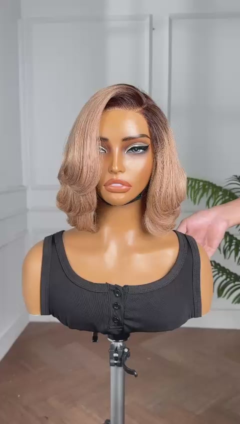 Ash Blonde Ombre / Natural Black Blunt Cut Bob Glueless Minimalist HD Lace Short