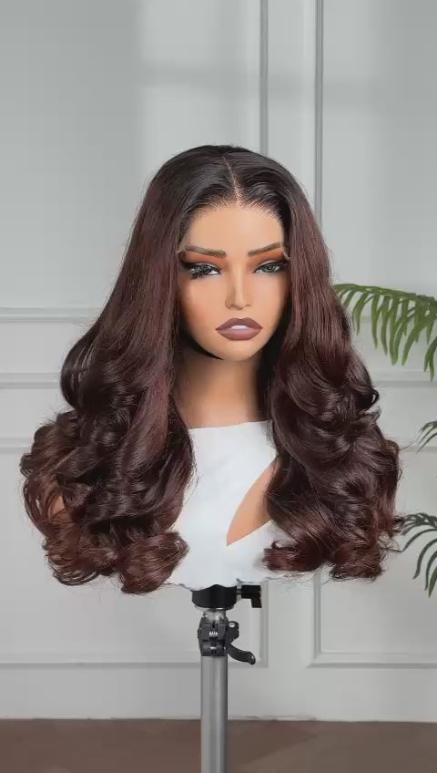 Turn heads with this soft, wavy 18” wig in a rich brown shade. Made from 100% human hair, it features a 5x5 lace closure for a natural, flawless finish. Full of volume, bounce, and shine—perfect for any occasion.